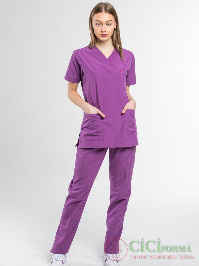 Zarf Yaka Kırmızı Takım Bayan Önlüğü